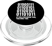 Computer reading binary coding motif with programmer nerd developer design. If you can read this, you are too binary is an amazing gift for computer programmer, computer science student, geek, nerd, developer, software engineer or coder. Magnetically snaps on and off your phone case so you can easily swap between MagSafe compatible accessories. Adaptor ring included. Make any phone case MagSafe compatible by attaching the adaptor ring. A phone case is required but not included to use the wallet. Printed top is swappable. Close and twist to swap the top with a new design with other compatible PopGrip models.