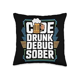 Programmer Beer Lover Alcohol Drinker Computer Programming. This Code Drunk Debug Sober is for a beer drinker who likes to debug and write codes. A funny programming clothes for a beer lover into computer programming. Searching for a cute programmer design for a beer drinker who is a computer programmer? Are you a beer lover expert in software development and programming? Then this is for you. 100% spun-polyester fabric Double-sided print Filled with 100% polyester and sewn closed Individually cut and sewn by hand Spot clean/dry clean only