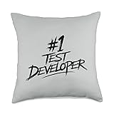 #1 Test Developer. Number One Test Developer. Funny Test Developer graphic for current and retired Test Developers. 100% spun-polyester fabric Double-sided print Filled with 100% polyester and sewn closed Individually cut and sewn by hand Spot clean/dry clean only