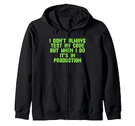 - Level up your coding wardrobe with our "I Don't Always Test My Code" apparel. This design is a tribute to the legendary programmer meme that every developer knows too well. Featuring a clean, retro-style pixel font in vibrant green, it brings a touch of humor to the high-stakes world of software deployment. Whether you are a backend expert, a frontend wizard, or a student just starting your coding journey, this graphic is a relatable way to express the reality of life in tech. Designed for comfort during long debugging sessions, it makes a fantastic gift for birthdays, work anniversaries, or just to celebrate a successful (or risky) deployment.