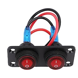 - [Durable Construction] Built with a reinforced aluminum panel and highly conductive pins, this rocker switch panel offers exceptional durability and long-lasting performance. the robust design ensures optimal conductivity and resistance to wear and tear, making it a reliable choice for demanding applications. [Wide Compatibility] This 2 gang rocker switch panel is designed for use in various vehicles and marine applications, including cars, boats, yachts, utvs, atvs, trucks, trailers, rvs, buses, and even aircraft. its universal design makes it a versatile solution for multiple lighting needs. [Effortless Installation] The on off rocker switch panel features a user-friendly design that supports bidirectional installation in both horizontal and vertical directions. simply reserve the installation holes on your vehicle body, and use the included four installation screws to secure the panel effortlessly. [Multiple Lighting Options] This rocker switch can control a variety of lighting setups, including led light strips, work lights, taillights, headlights, fog lights, and auxiliary lighting. its versatile functionality makes it an essential component for any automotive or marine lighting system. [Versatile Control] Each switch in this 2 gang rocker switch panel independently controls its corresponding led lamp, making it perfect for a wide range of circuit control scenarios. the design ensures reliable performance even in harsh conditions, while the led light emitting components provide clear visibility in any environment. Spec: Item Type: 2 Gang Rocker Switch Panel Material: ABS and aluminum panel Rated Current: 20A Color: Red Application: Suitable for cars, marine boats, yachts, UTVs, ATVs, trucks, trailers, RVs, etc. Package List: 1 x LED Switch Panel 4 x Screws How To Use: Connect the wire and screw for installation and fixing.