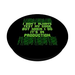Show off your developer lifestyle with this funny programmer design. Featuring a classic pixelated font, it captures the sarcasm of software engineering and the thrill of testing code in production. Perfect for web developers and IT pros. Ideal surprise for software engineers, coders, and computer science students. Great for casual office wear, tech conferences, or hackathons. A witty statement for any tech lover who enjoys a bit of risky programming humor. Adhesive backing attaches the PopGrip to your case or device. Will not stick to silicone,leather,waterproof,or highly textured cases. Works best with smooth,hard,plastic cases. Not compatible with wireless charging Printed top is swappable with other compatible PopGrip models. Just press flat,turn 90 degrees until you hear a click and remove to swap.