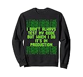 - Level up your coding wardrobe with our "I Don't Always Test My Code" apparel. This design is a tribute to the legendary programmer meme that every developer knows too well. Featuring a clean, retro-style pixel font in vibrant green, it brings a touch of humor to the high-stakes world of software deployment. Whether you are a backend expert, a frontend wizard, or a student just starting your coding journey, this graphic is a relatable way to express the reality of life in tech. Designed for comfort during long debugging sessions, it makes a fantastic gift for birthdays, work anniversaries, or just to celebrate a successful (or risky) deployment.