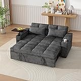KEIKI 65" 3-in-1 Convertible Sofa Bed, Space-Saving Pull-Out Sleeper Couch with 90° Swivel Side Table, Built-in USB & Type-C Charging Ports, Hidden Storage Armrests for Modern Apartment Living