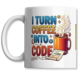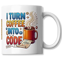 Engineer Coffee Mug - I Turn Coffee Into Code - Bold Colourful Desk Mug - Gift For Software Engineers - 11oz Ceramic Cup