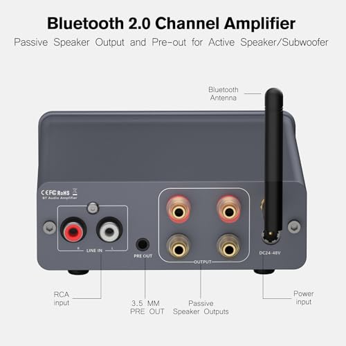 - Bluetooth 5.4 Connectivity: The amplifier home audio supports Bluetooth 5.0 for seamless wireless audio streaming. You can easily disconnect the Bluetooth connection by holding the volume control for 5 seconds. It also features a memory function for quick re-pairing and an alert tone for added convenience.