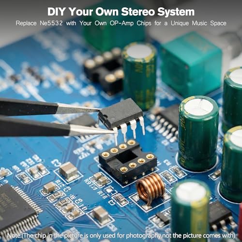 - High-Efficiency & Customizable Sound: this chip stereo amplifier features interchangeable Op-Amps, allowing you to personalize the sound to your preference. Swap out the stock NE5532 Op-Amps for options like LME49720HA, MUSES02, OPA2604AP, OPA2134PA, LM4562, or NJM4556AD to achieve different tonal qualities. It delivers an impressive signal-to-noise ratio (SNR) of ≥108dB and ultra-low Total Harmonic Distortion (THD) of ≤0.005%.