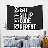 LKESMEOGP Funny Developer Gift Eat Sleep Code Repeat Tapestry Wall Art Wall Hanging Home Decorations for Bedroom Dorm Living Room 60 x 40 inch