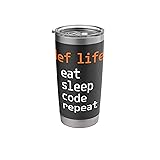 def Life eat sleep code repeat programming Dual wall insulated: keeps beverages hot or cold Stainless Steel, BPA Free Leak proof lid with clear slider