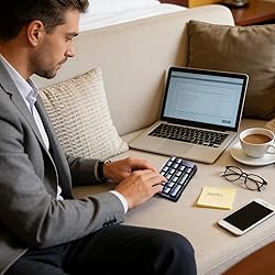 Dependable Keystroke Feedback: This wired number pad features tactile mechanical switches with a dependable key mechanism, precise keystroke feedback that improves financial data accuracy, suitable for accountants or analysts working on detailed reports Portable Efficiency Redefined: The numeric keypad features a compact design that provides working readiness while providing portability, making it lightweight and easy to carry for outdoors professionals who need efficiency in various settings like businesss or remote works Zero Latency Input: The wired numeric keypad provides zero latency input through its protected USB cable, enabling stable data transmission for seamless during banking tasks or data entry work where precision and speed are important to maintaining workflow efficiency without interruptions Efficient Number Handling: Designed for faster data entry, the full numeric keypad incorporates an optimized key layout to improve high efficiency tasks like invoicing or inventory management Convenient Plug-And-Play Keypad: With non driver setup necessary, the computer number keypad provides effortless plug-and-play use, streamlining across laptops and desktops while supporting activities like budgeting, invoicing, and other numeric-heavy tasks