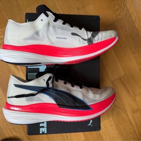 - PUMA Deviate Nitro Elite 2 Women’s Running Shoes White Coral Blue 10.5 Step into speed and comfort with these PUMA Deviate Nitro Elite 2 women’s running shoes — designed for elite performance and everyday runners alike. Details: • Style: 377187-03 • Color: White / Fiery Coral / Blue / Black • Size: Women’s 10.5 (UK 8 / EU 42 / CM 27) • Lightweight, breathable mesh upper • NITRO™ Elite Foam for responsive cushioning • PWRPLATE carbon plate for propulsion and stability • PUMAGRIP outsole for durable traction • Blue heel detail with PUMA Cat logo • Brand new in box (BNIB), never worn ✨Perfect for training, racing, or everyday athletic wear — high performance meets sleek PUMA style! 📦 Comes in original box with tissue paper.