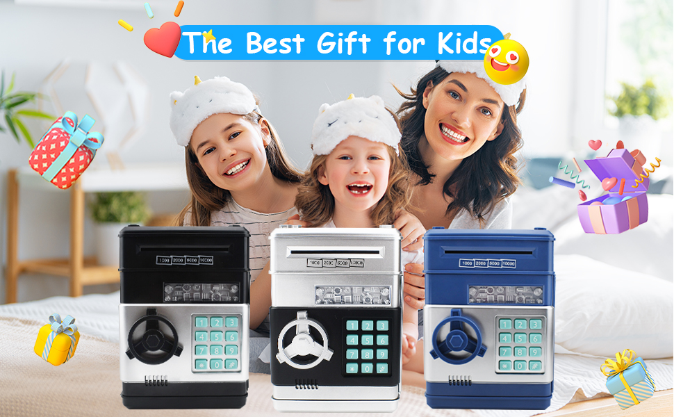 - 👑🌲【Best Kids Toy】This is a quality electronic piggy bank to save cash and coin.It is the best choice for kids birthday gifts and holiday gifts,like Christmas,New Year.It offers a positive way for children to learn the virtues of saving money and develop a good habit on financial management.Kids may storage the pocket money for their plan,such as to buy the gift for parents,for friends,for families as surprise. Really Good Financial Helper for kids!