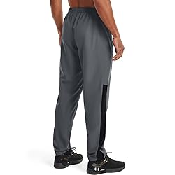 - The goal with the UA Woven collection was to make the perfect set of warm-ups that keep your muscles ready, work for any sport, and also pack up super-small in your bag, so you can take them anywhere. Smooth, ripstop woven fabric is lightweight & extremely durable. Wind-resistant materials & construction shield you from the elements. Mesh lining delivers superior breathability & comfort. Encased elastic waistband with internal drawcord. Open hand pockets. 7"" ankle zips for easy on/off even over cleats. Inseam: 31.75"". Loose: Fuller cut for complete comfort. 100% Polyester.