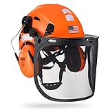 【Forestry Helmet System with Accessories】:GREEN DEVIL 3 in 1 safety helmet comes with ABS helmet, adjustable/removable earmuffs, and mesh visor, providing dynamic protection for any job.Equipped with a pair of 25 dB NRR earmuffs that help block out tool and engine sound noise for hearing protection.Easy flip-up metal mesh provides good visibility and debris protection.The accessories is easy to assemble,come with detailed installation instructions. 【Customize Fit】:Adjustable 6-point suspension system for improved shock absorption and overall comfort.The replaceable egyptian cotton core sweatband with porous coating for maximum sweat absorption make workers comfort fit during whole working hours.Comfortable and convenient chinstrap with molded chin-cup for extra security and stability,also it's easy to remove.One adjustable size fits most. Helmet size range from 53-63cm/ 20.86-24.80 inch. 【Extra Design】:Sliding vent holes allow easy opening and closing based on weather conditions .One-handed adjustment design allows workers to modify fit without removing work helmet,even with gloves on.Orange color and Hi-Viz design on the front-rear-and sides of the helmet allows the user increased visibility under low light conditions.Universal slots design ensures that safety hardhats to install attachments. 【 Hard Hat Kit For Forestry Professionals And Beyond】:GREEN DEVIL vented forestry helmet kit is made for professional forestry type work.Provides the protection you need when you are working in mowing,chain sawing,hedge trimmers,shrub trimmers,bush-cutters that require face,ear, eye and head protection while you work.Also great for construction,mechanics,hobbyists,craftsmen,engineers,shipbuilding,refining,carpenters,etc. 【Reliable Protection】:GREEN DEVIL safety helmet for forestry use is constructed with heavy duty, impact resistant materials that provide long service life and protection.Chainsaw helmet meets ANSI Z89.1-2014 standards and is CE approved for highest quality, safety, and performance. Modern style lightweight high-density polyethylene hard hat to give you and your company the ideal choice in ANSI Type I head protection.If you have any questions, welcome to reach us,we will make things right, FAST!